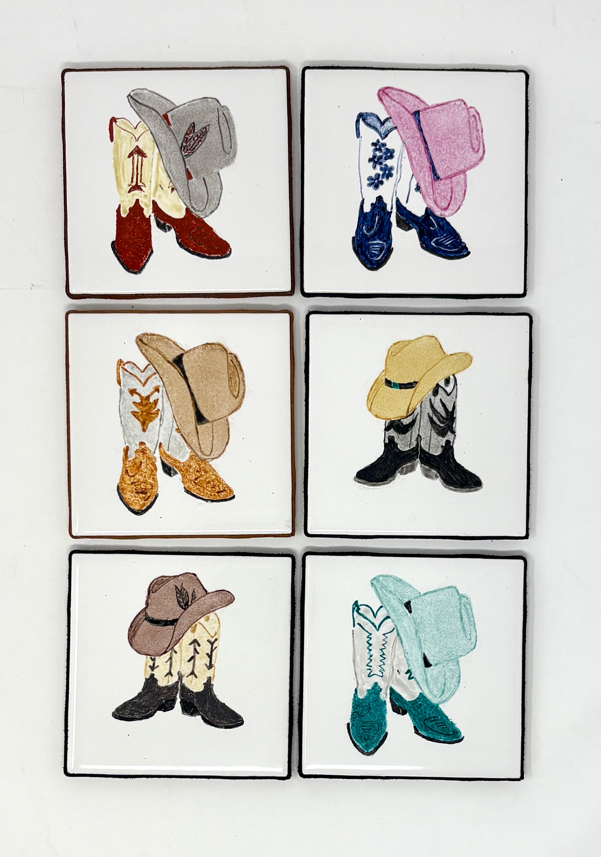 Sue Morriss's coasterss are done in the very old, traditional technique of China Painting, which is usually referred to as the method of painting on white colored and glazed porcelain objects. The type of paint used for this method is called an overglaze paint. This means it is designed to be used on top of already glazed porcelain. This is different to underglazes, which are generally painted on the raw ware and fired, and then the glaze is applied.